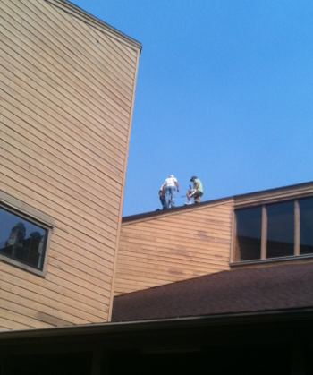 Out of an abundance of caution, Camp Allen staff is installing sprinklers on the roof of the conference center. Fires are still not directly threatening the complex, but Camp Allen wants to be as prepared as possible.
